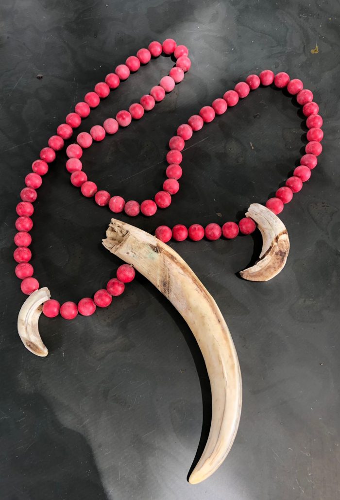 129) Cordão com presa; osso; 80cm; R$85