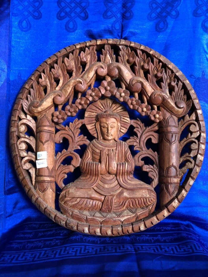 83) Quadro de Buda talhado; madeira; 44cm; R$500