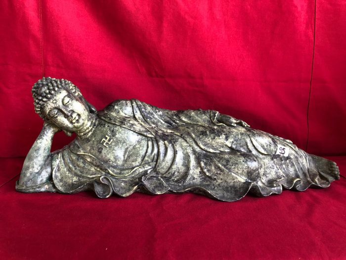 95) Budha deitado; mármore; 45 cm de Comp. X 15 cm de Alt; R$1.000