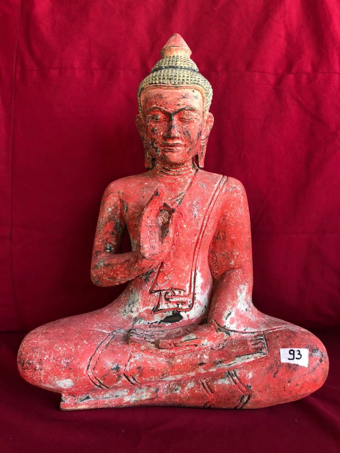 *93) Buddha Vermelho; madeira; 38cm altura x 29,5cm base; R$350